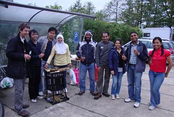 雨の中アーネムの街は賑やかで、そこらじゅうでライブが行われていた。